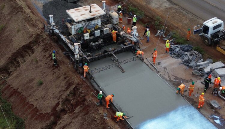 A obra entrou em um ritmo mais acelerado após o início da execução das placas de concreto do pavimento rígido da pista nova no mês passado, sendo implantada ao lado da pista existente. Na medição anterior a obra estava 18,39% executada.