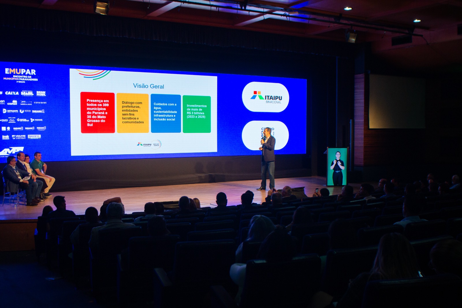 Verri, em sua palestra, também fez um breve apanhado dos projetos e da missão da Itaipu. Um dos destaques citados pelo diretor-geral foi o programa de capacitação AMP-Itaipu 4.0, que formou mais de 18 mil servidores e tem auxiliado pequenos municípios em áreas como educação e licitações, por exemplo.