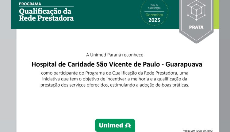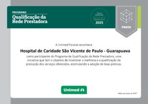 O Hospital São Vicente alcançou um importante reconhecimento ao conquistar o Selo Prata no Programa Segurança em Alta Unimed, com nota 8A. O resultado reafirma o alto desempenho da instituição em seus indicadores assistenciais e fortalece, de forma consistente, a cultura de melhoria contínua em todas as áreas.