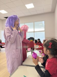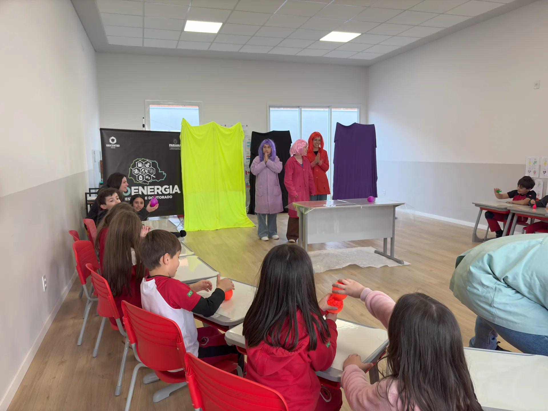A primeira ação do projeto foi realizada na Escola Maple Bear, em Guarapuava, atendendo alunos do 1º e 2º ano do ensino fundamental. A atividade foi recebida com muita interação, curiosidade e diversão. Para a coordenadora pedagógica da escola, Letícia Liz, o evento foi muito proveitoso para as crianças.