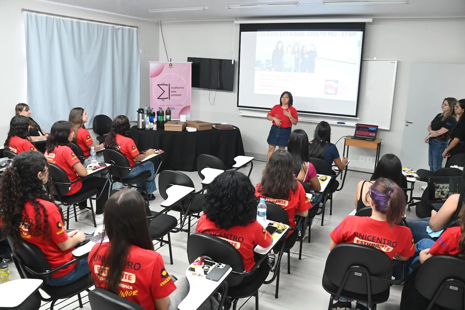 Nessa quarta-feira (25), o Projeto Mulheres que Somam, da Universidade Estadual do Centro-Oeste (Unicentro), promoveu a apresentação dos resultados de Iniciação Científica (IC) e Iniciação Científica Júnior (ICJr). Com atividades ao longo da manhã e da tarde, a iniciativa marcou o encerramento do primeiro ano do projeto, reunindo alunas de escolas participantes para apresentar pesquisas desenvolvidas ao longo do período, além de compartilhar experiências acadêmicas e pessoais vivenciadas durante a participação nas atividades.