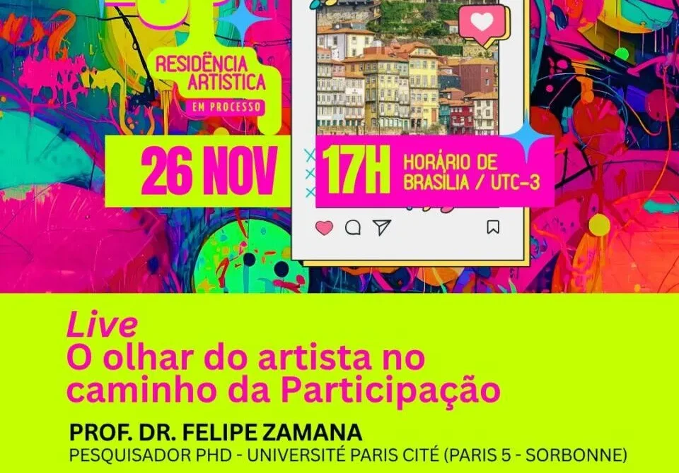 O evento, intitulado “O olhar do artista no caminho da Participação”, revisita criticamente o entendimento tradicional da criatividade como ato individual. Para a fundadora da residência, professora Desirée Melo, a presença de Zamana contribui para ampliar o debate. “A participação de Felipe Zamana reforça uma discussão necessária sobre práticas colaborativas e modelos contemporâneos de criação. A parceria com o Grupo de Pesquisa em Arte amplia a circulação de perspectivas internacionais e atualiza o debate sobre processos criativos.”