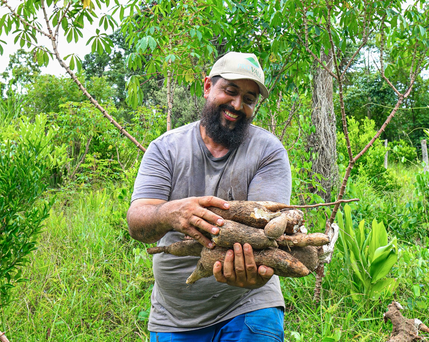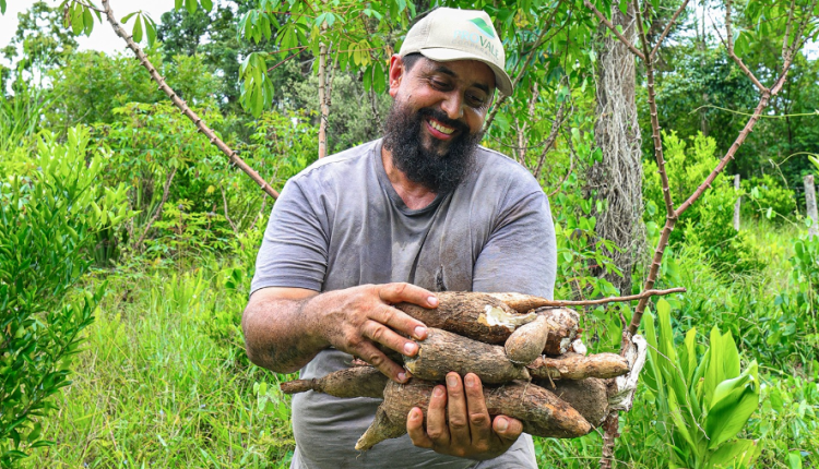 Na lavoura, também houve alteração na produtividade. Antes do acompanhamento técnico, a média era de aproximadamente três quilos por pé de mandioca. Ao final do ciclo, a produção alcançou cerca de seis quilos por planta, com ajustes na adubação e no manejo do solo.