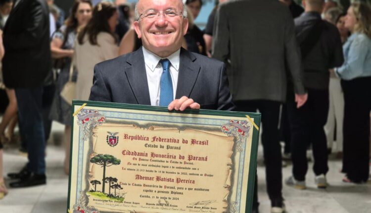 O empresário Ademar Batista Pereira recebeu o título de Cidadão Honorário do Paraná em solenidade realizada na segunda-feira (24), na Assembleia Legislativa do Paraná. A honraria, concedida por iniciativa da deputada Márcia Huçulak (PSD), reconhece sua trajetória e impacto nas áreas de educação, empreendedorismo e sustentabilidade.