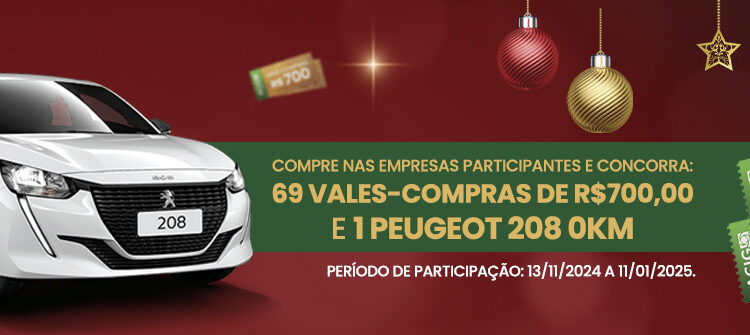 Serão sorteados 69 vale-compras de R$ 700 e um Peugeot zero-quilômetros