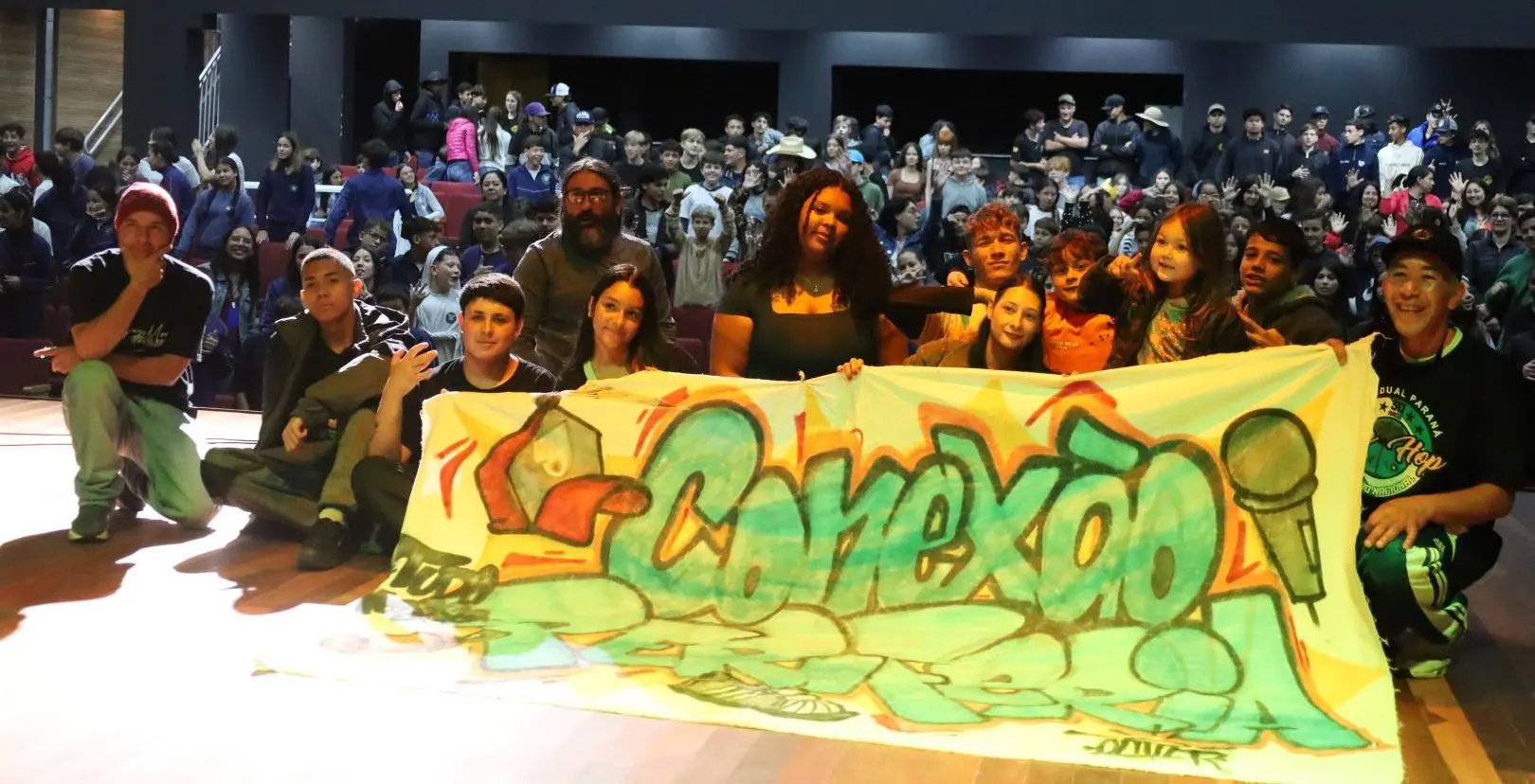 Nesta terça-feira (18), o Conselho Municipal de Promoção da Igualdade Racial de Guarapuava (Compirg) realizou um evento no teatro da UTFPR, em celebração à Semana da Consciência Negra. O encontro reuniu alunos de diversas idades em um momento cultural e de diálogo focado na promoção da igualdade racial e na valorização das diferentes experiências culturais negras.