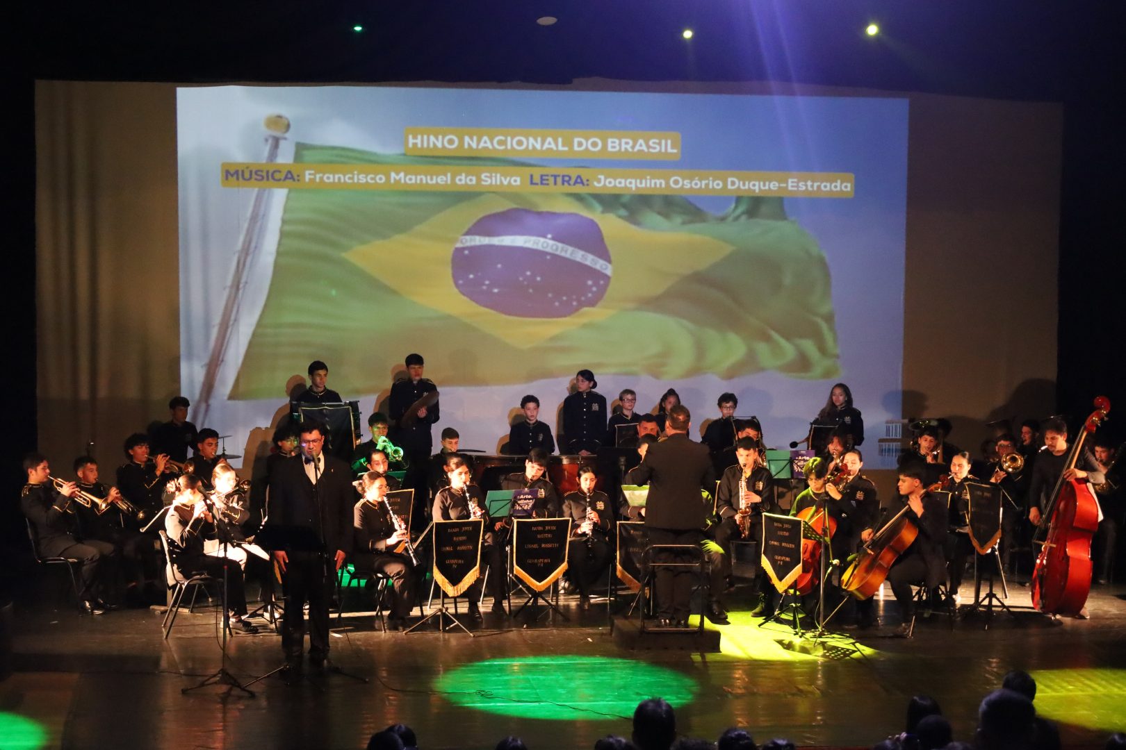 A vice-prefeita, Rosângela Virmond, encerrou a noite agradecendo aos envolvidos. “Que bom que vocês vieram. É uma alegria resgatar os hinos da nossa nação e celebrar nossos símbolos. Agradecemos às forças militares, à Secretaria de Cultura, ao maestro e aos músicos que abrilhantaram a noite. Viva o Brasil!”