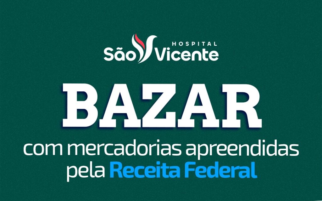 No próximo sábado (04), o Hospital São Vicente realizará um bazar de produtos apreendidos pela Receita Federal, no Guarapuava Esporte Club (R. Brigadeiro Rocha, 1000 – Centro, Guarapuava), das 08h às 18h.