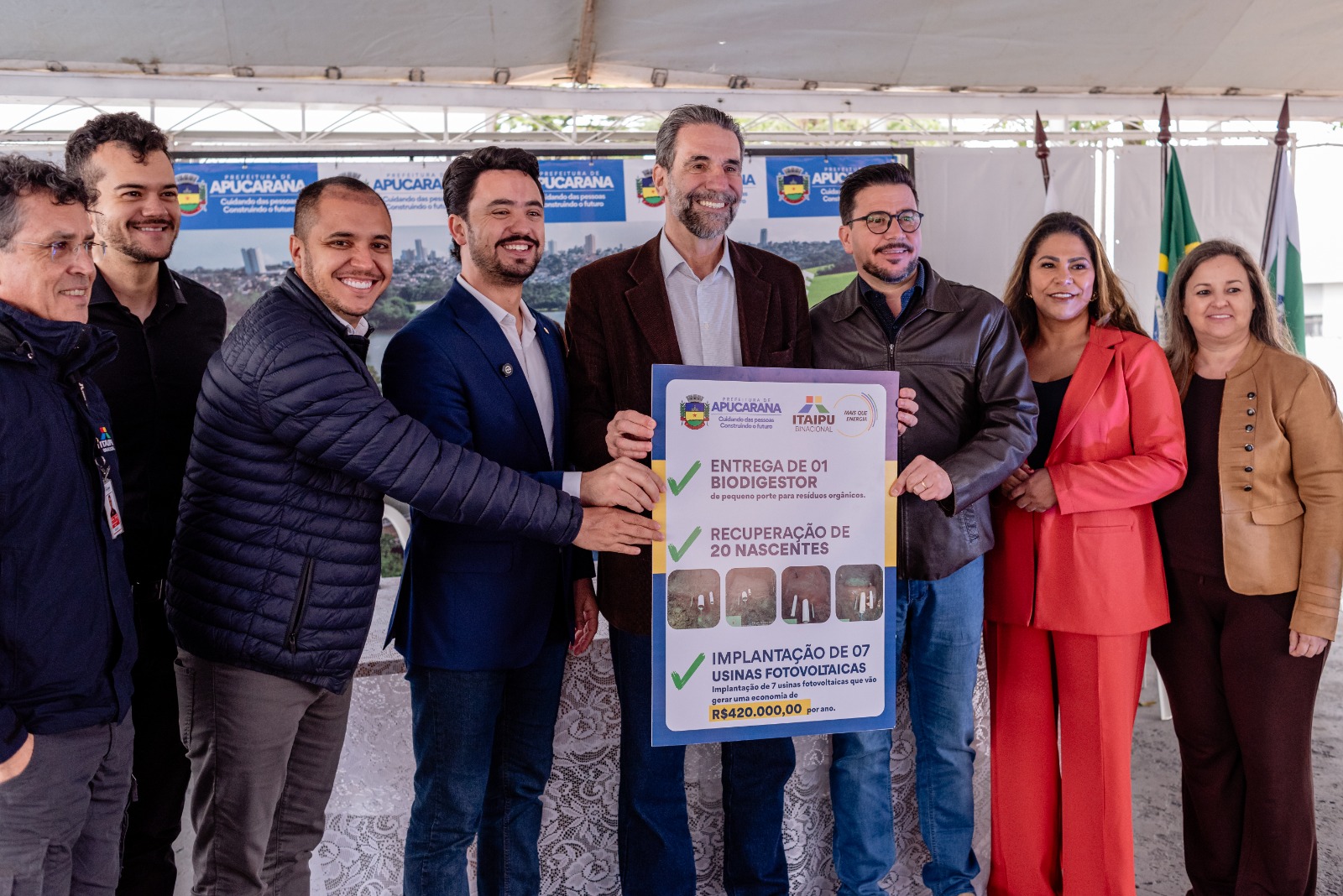 Todas as ações entregues em Apucarana fazem parte do Programa Itaipu Mais que Energia, um compromisso da Binacional, seguindo as diretrizes do Governo Federal, com o desenvolvimento sustentável e econômico de 399 municípios do Paraná e 35 do sul do Mato Grosso do Sul. Participaram das cerimônias diretores da Itaipu e do Itaipu Parquetec, deputados, prefeitos, vereadores, secretários municipais, catadores, professores e lideranças locais.