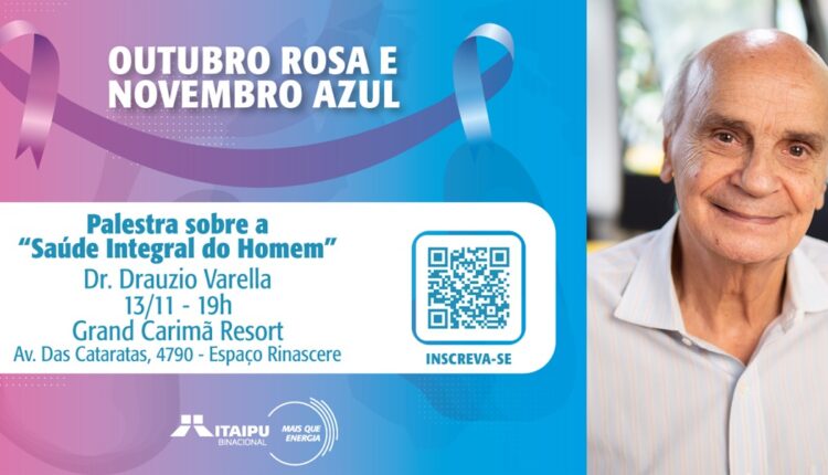 A Itaipu abriu novas vagas para quem quiser assistir à palestra “Saúde Integral do Homem”, com o Dr. Dráuzio Varella, um dos médicos mais famosos do Brasil. A medida atende à grande demanda de pessoas interessadas no evento. Mas, atenção: as novas vagas são bastante limitadas. Por isso, quanto antes fizer a inscrição, mais chances de poder participar. Para isso, basta se inscrever em https://forms.office.com/r/h2Rw9UTVLS e aguardar a confirmação.
