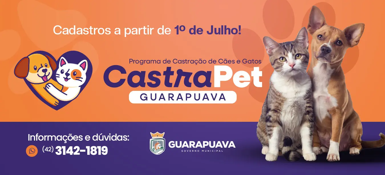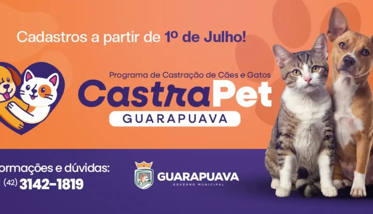 A partir da próxima terça-feira (1º), a Prefeitura de Guarapuava dá início aos cadastros para o Programa de Controle Populacional de Cães e Gatos – CastraPet, uma demanda antiga da população que finalmente será atendida com um novo formato mais organizado e acessível. A ação é conduzida pela Secretaria de Meio Ambiente (SEMAG) e pelo Departamento de Proteção Animal.