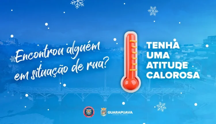 A Prefeitura de Guarapuava alerta a população sobre uma forte frente fria que chega a partir do dia 27 de maio. Para a parcela mais vulnerável da população, a atenção deve ser redobrada. Pensando nisso, a Secretaria de Assistência e Desenvolvimento Social (SEMADS) irá ampliar as ações voltadas à população em situação de rua. O governo do Paraná divulgou que a frente fria atingirá especialmente a região centro-oeste, com temperaturas próximas a 0°C.