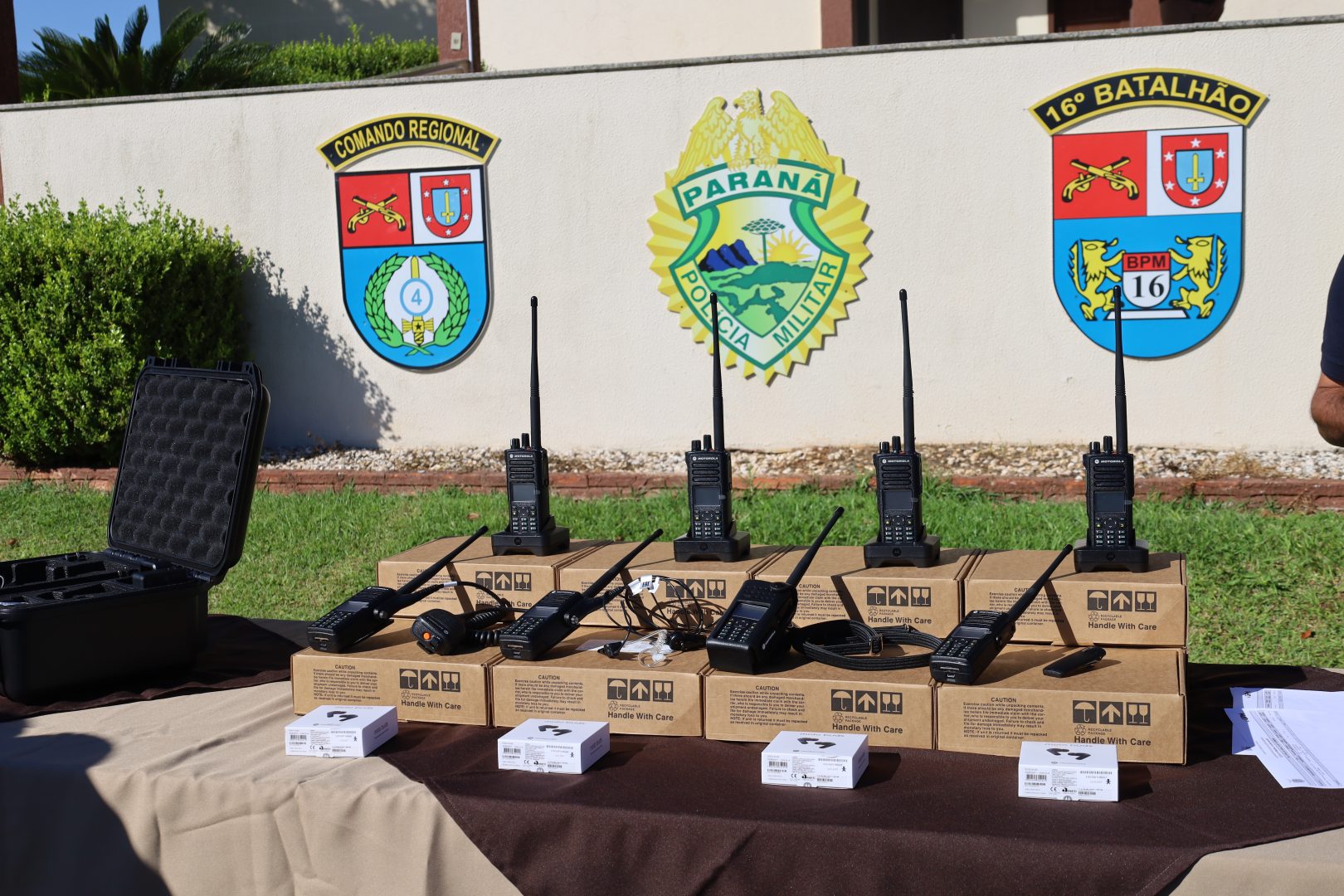 O 16º Batalhão da Polícia Militar de Guarapuava recebeu, na manhã desta quinta-feira (19), novos equipamentos destinados ao reforço das atividades operacionais e administrativas da corporação. Foram entregues um drone, 140 computadores, uma viatura específica para operações com cães e 102 comunicadores móveis (HTs).