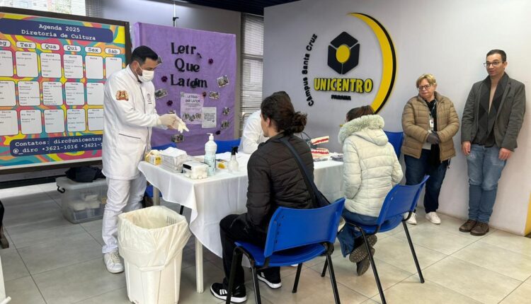 Nesta quinta-feira (29), alunos de Odontologia da UniGuairacá participaram de uma ação de conscientização do câncer bucal, na Universidade Estadual do Centro-Oeste (Unicentro), nos campus Santa Cruz e Cedeteg.
