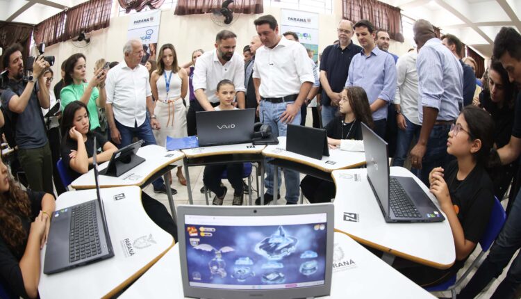 Recursos de Inteligência Artificial foram apresentados pelo governador a estudantes e professores do Colégio Estadual Professora Maria Aguiar Teixeira, em Curitiba