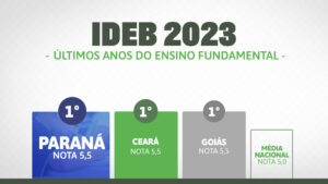 Nos anos iniciais do ensino fundamental, cuja gestão é feita pelos municípios, o Paraná também aparece na liderança do Ideb com nota 6,7, acima do Ceará, que teve um índice de 6,6, e de São Paulo, com 6,5. O resultado é reflexo do programa Educa Juntos, no qual a Secretaria de Estado da Educação orienta as gestões municipais com materiais didáticos, formação de professores e seminários.