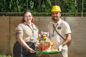 O aniversário reuniu cuidadores, biólogos, auxiliares veterinários e estagiários de medicina veterinária. A presença de toda a equipe dentro do recinto foi planejada especialmente para esse momento, já que, no dia a dia, o contato costuma ser mais restrito para garantir o bem-estar do animal.