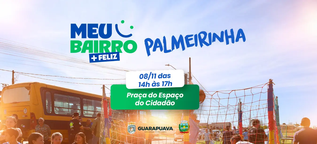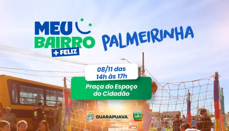 Neste sábado (8), os moradores do bairro Colibri e região da Palmeirinha poderão aproveitar uma tarde especial com muitas atividades, brincadeiras e serviços gratuitos durante mais uma edição do Meu Bairro Mais Feliz. A ação é promovida pela Prefeitura de Guarapuava, por meio da Secretaria de Esportes e Recreação, e reúne diversas secretarias municipais em um grande mutirão de cidadania e lazer.